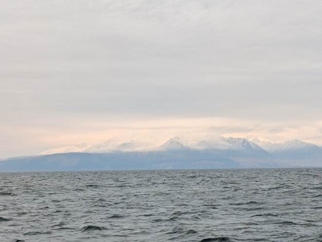 The weather was typical for February; it was cold, and clouds obstructed the sky for most of the week. A few snowflakes greeted us on Monday morning, leaving the mountains of Arran beautifully dusted in white. The wind ranged from moderate to strong, culminating in a final-day gale that kept us docked on Friday. Going for a Day Skipper course in February was certainly a bold choice, but it prepared us for the toughest Scottish conditions. I dare say we did pretty well and thrived despite the cold and wet weather.