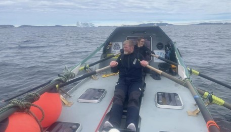 Rowing Hermione for the first time in the Arctic with Davie