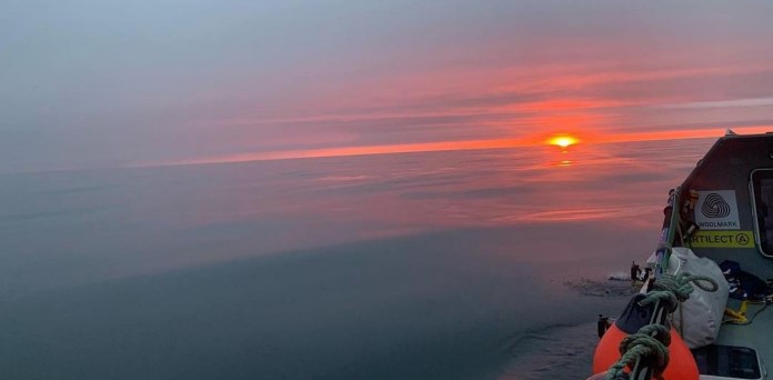DAY 1- Thursday 17th August The crew had its final landside breakfast at the local hotel prior to setting off. Once we left the harbour the swell picked up and it was a bit of a battle all afternoon. We covered lots of ground though and are making progress. It’s been a bit of a baptism of fire for the crew, but everyone seems to be doing well. As I finished my shift, I was treated to seeing a beautiful bright red sun on our port side and a seal popping it’s head up to try and say hello every now and again.