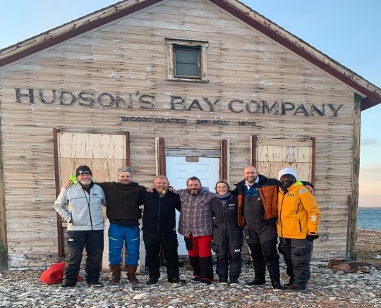 Once we reached the ranges just outside Cambridge Bay, we were taken ashore in the RIB so that we could go ahead and organise things for Hermione and find places for crew to stay. We said our thanks to the captain and crew of RCCG Sir Wilfred Laurier and I was delighted to be presented with a commemorative ship’s coin from them. The work that the coastguard and S&R teams do is invaluable, and we are so grateful to them for their quick response and how they dealt with the situation. Thankfully we weren’t in any distress, but the coastguard team were wonderful to deal with and we cannot thank them enough. Once back on dry land (a few of the crew had the wobbles whilst they adjusted to their legs walking on hard ground again) we were stopped by the RCMP who needed to see us about some paperwork. Due to the coastguard not knowing much about us when they collected us, they had to tell the RCMP they were bringing 8 people ashore to Canada. In small communities like Cambridge Bay there is no customs office and so it is up to the RCMP to complete all necessary immigration paperwork. We had to head to the station and explain that we had already cleared customs in Canada and hadn’t left it. Unfortunately, there was some confusion and immigration thought we had headed to Greenland and then back again. Eventually we sorted everything out and were also able to start making arrangements for the necessary paperwork that was required to keep Hermione in Canada over the winter. The RCMP were also brilliant and dealt with everything very efficiently and so we are also extremely grateful to them as well.