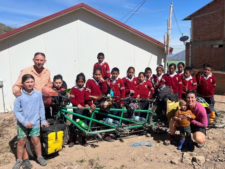 We have been on the road now around 15 months cycling through New Zealand, South America and now the UK. As teachers we school the children along the way and they have a great time meeting other people and exploring the world slowly. We often sleep in tents, but also love the hospitality we’ve received along the road staying with locals, eating together, sharing stories and learning about the places we travel through.
