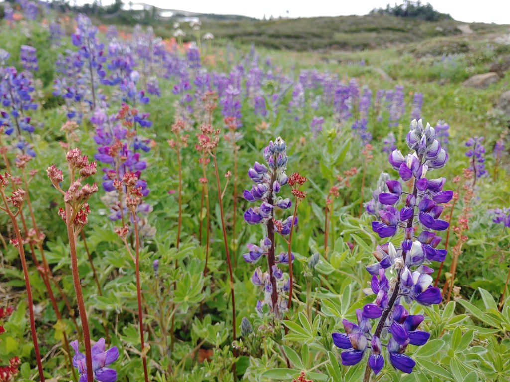 With a handful of days left we headed back east. Pushing off from shore we entered the steep Westerly swells and rode them, coasting along crests and taking on water in the troughs. From a camp in St. Thomas Bay we trekked up a ridge of Mount Chikamin. We ate a bear’s share of red and orange salmon berries on the ascent and picked our way through towering devil’s club. The meadows above the treeline opened into sprawling arrays of alpine flowers. I collected a Chikamin bouquet by taking pictures of every kind. We pushed upwards into cooler temperatures until my knee turned us around. The descent put a hurt on me.