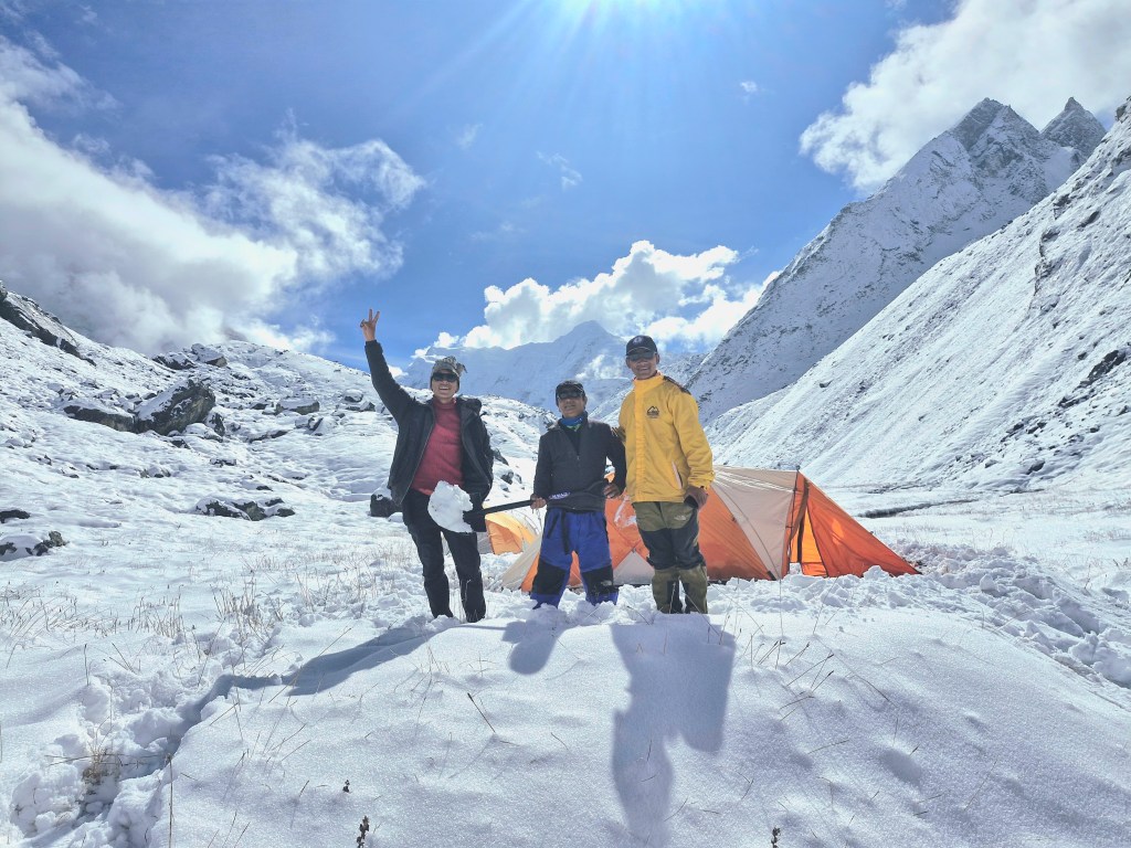 After successfully acclimatising on nearby peak, Parchamo 6187m, the team